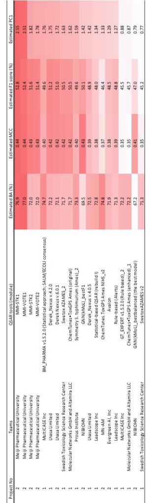 私たちはこれらの4種類のモデルを第2回Ames/QSAR国際チャレンジに登録していましたので、