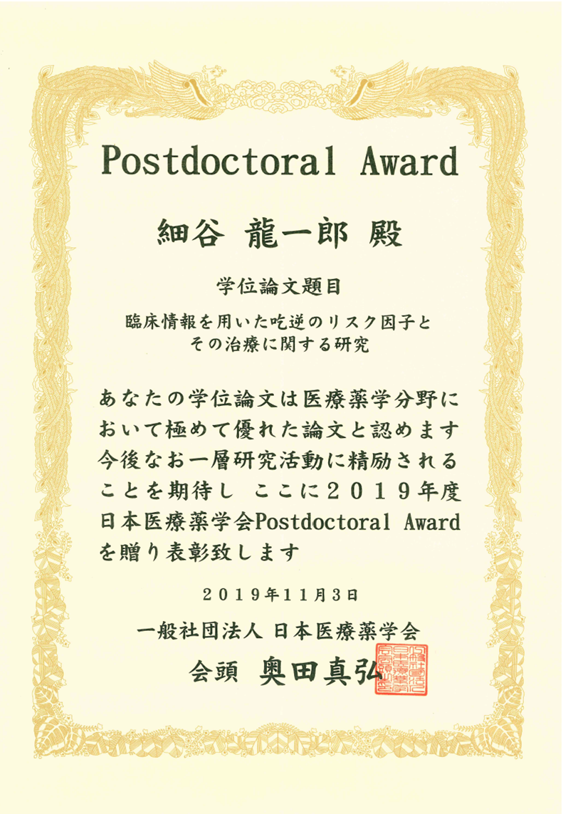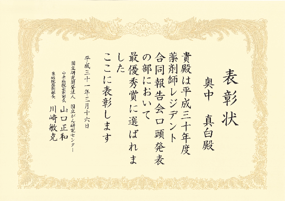 - 木村さん、第9回日本医薬品安全性学会学術大会優秀演題賞受賞おめでとうございます